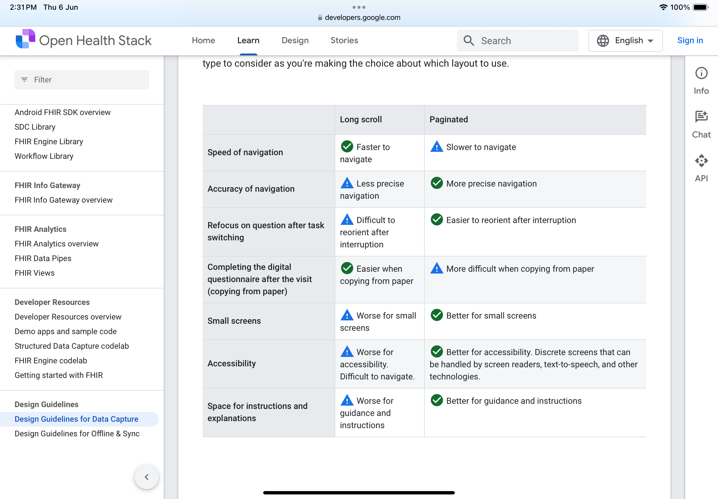 I chose a standards-based design approach centered around FHIR / SDS guidelines using Google's Open Health Stack. This approach will add a layer of uniformity to the visual design, interaction, and consistency in input gathering, as it is an industry-standard for various purposes, including: