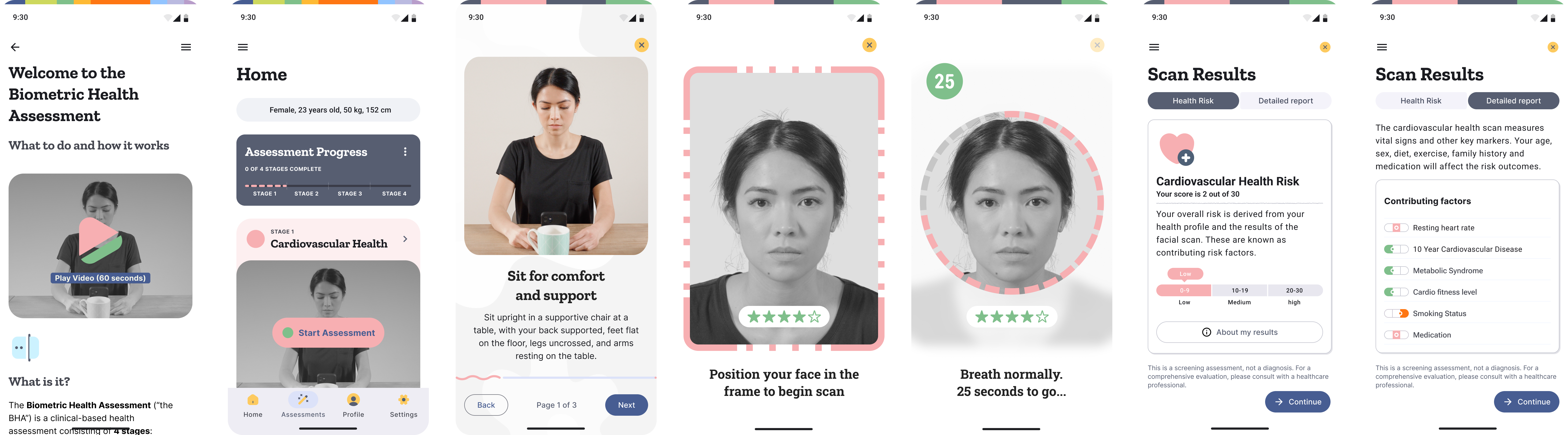 The Biometric Health Assessment (BHA) is a clinical-like health assessment consisting of multiple assessment stages. It is designed to assist clinicians or other upstream services in combined health risk analysis. The assessment is conducted using your smartphone at home and using household objects.