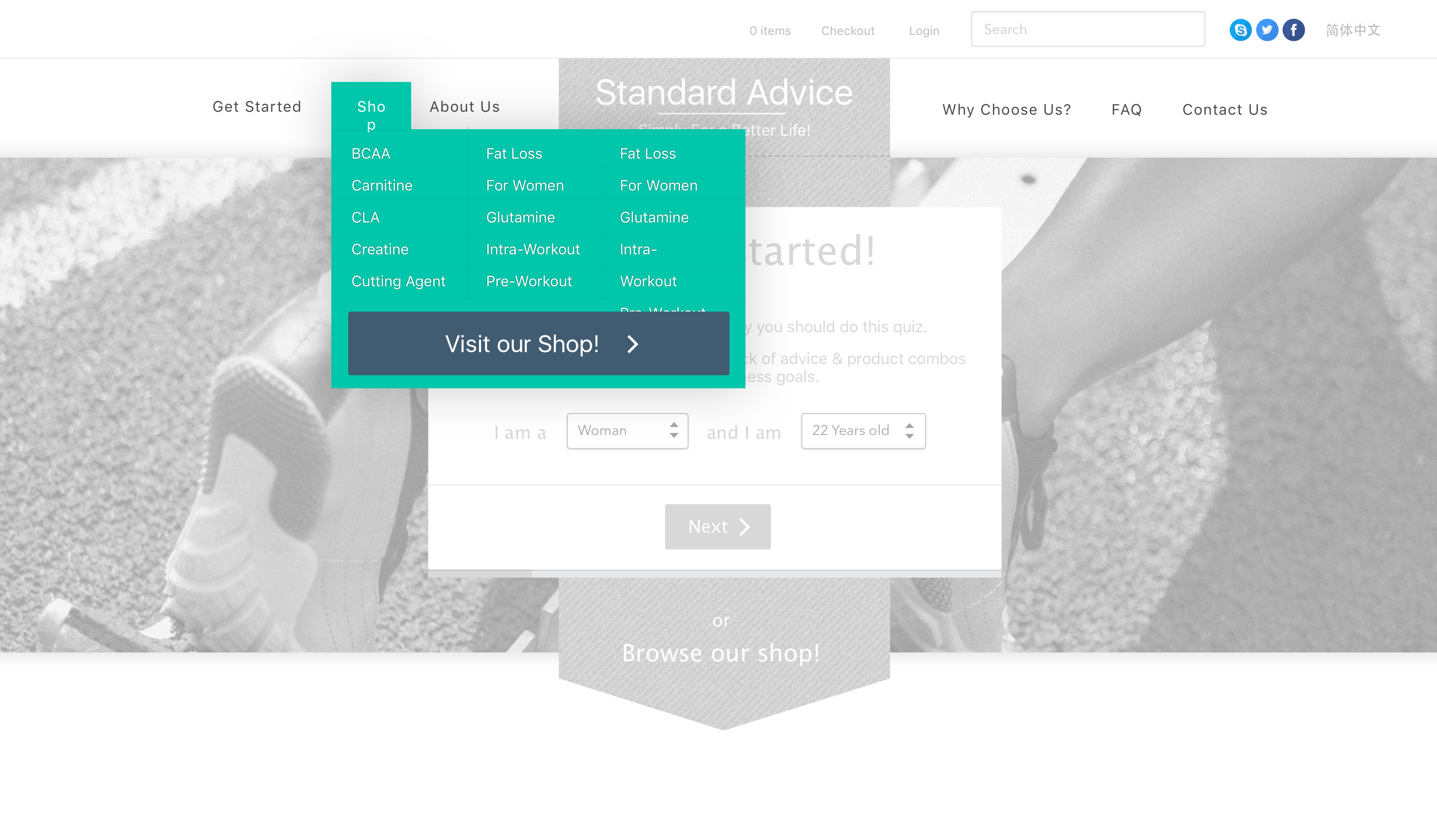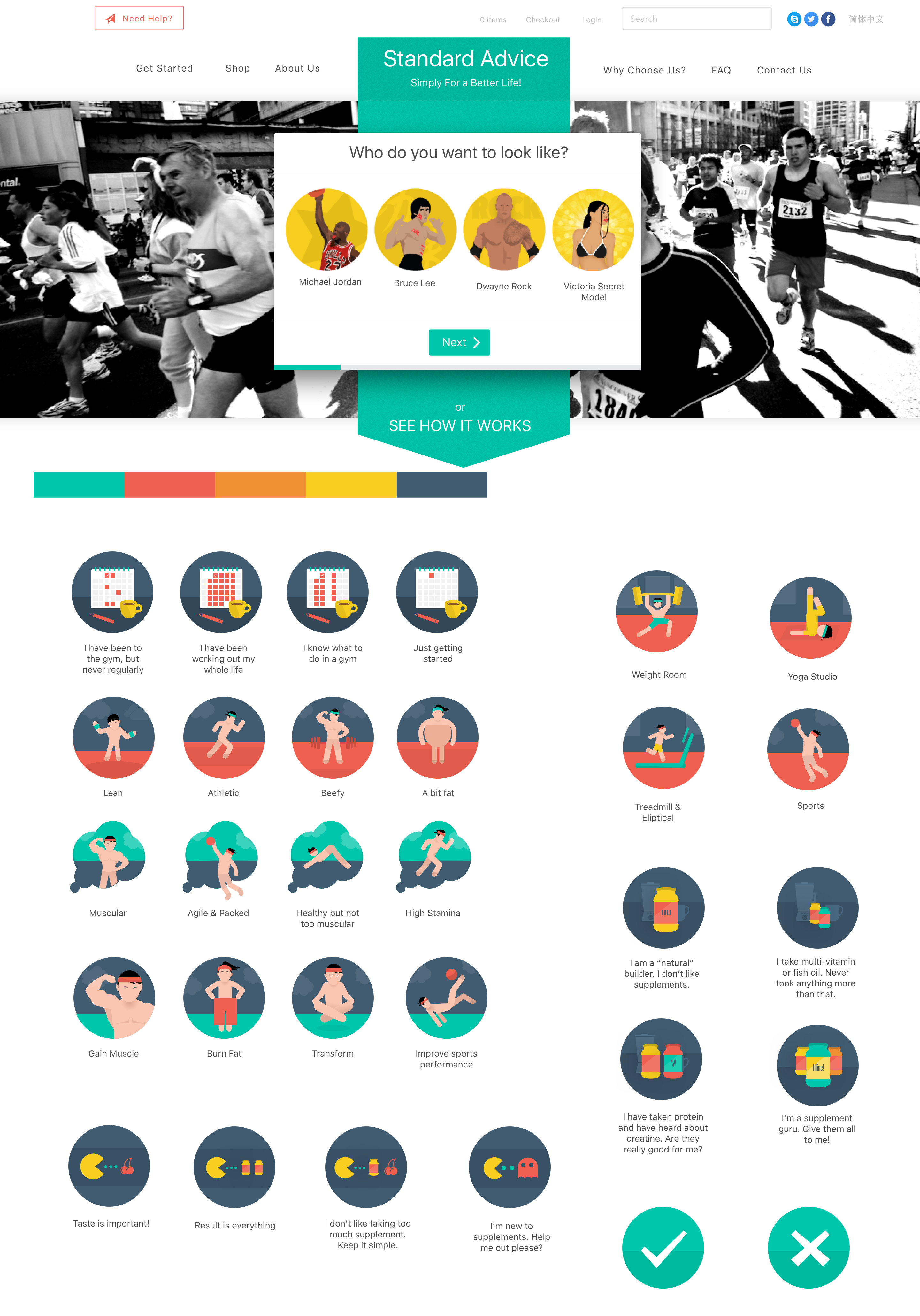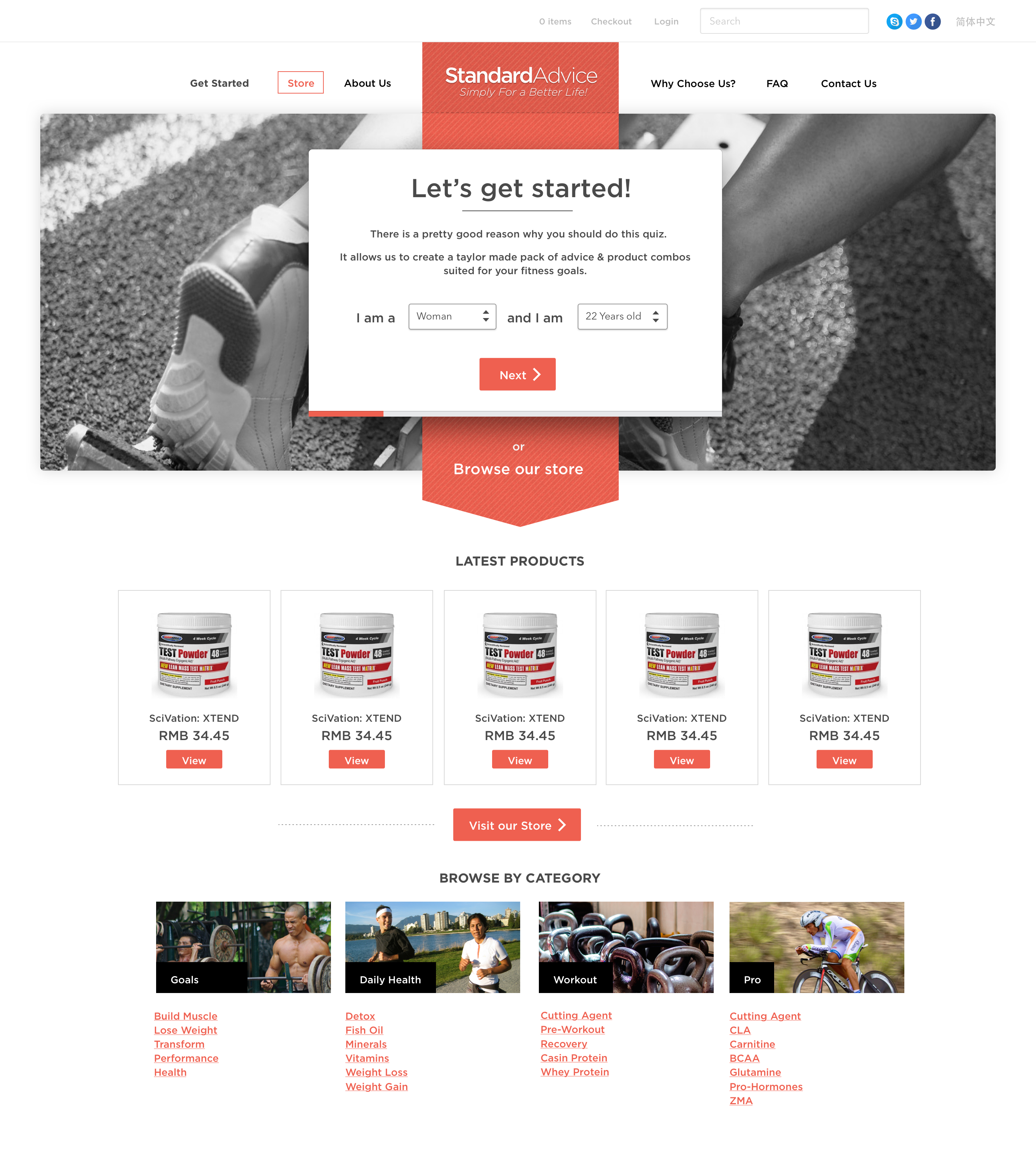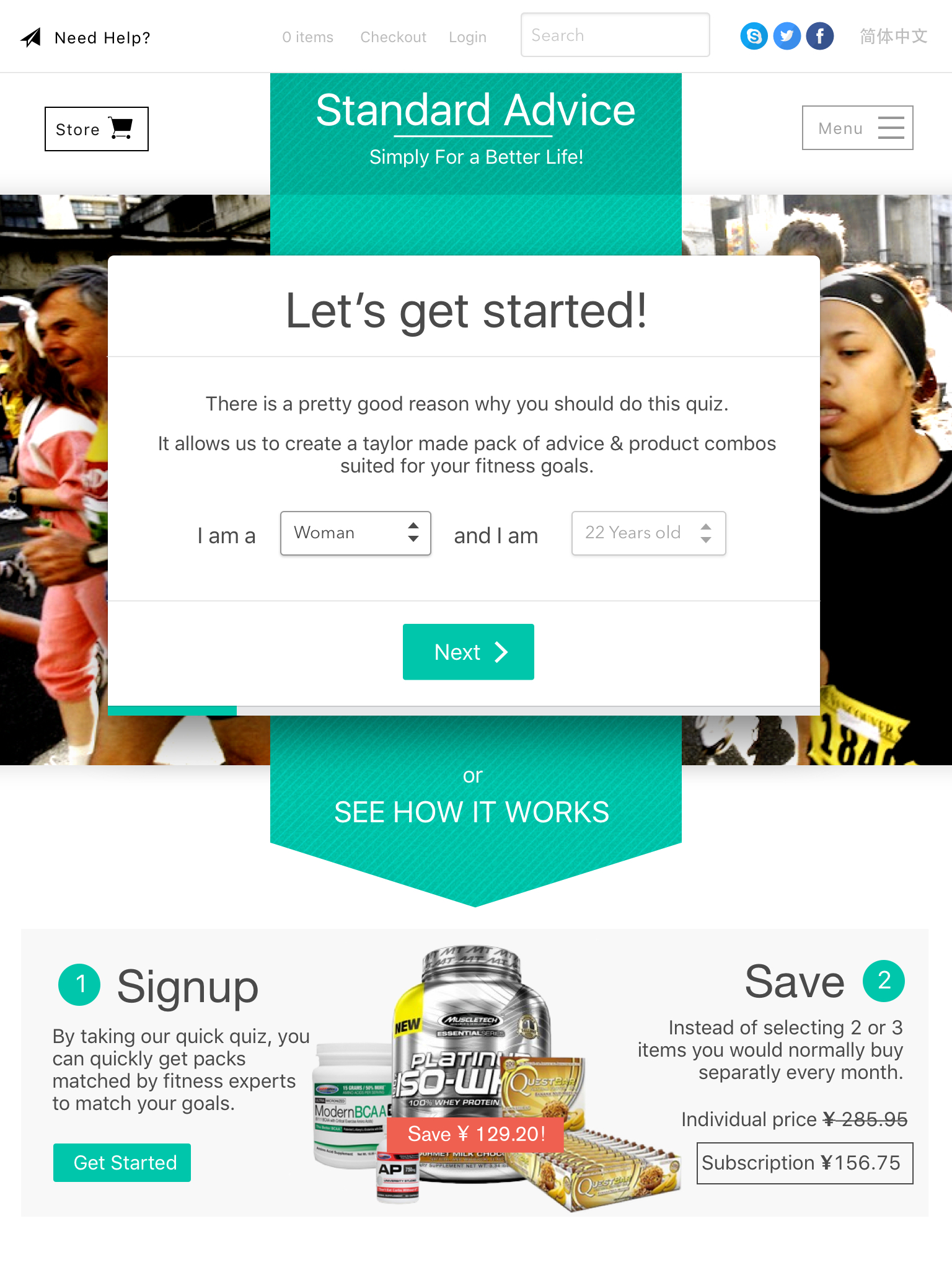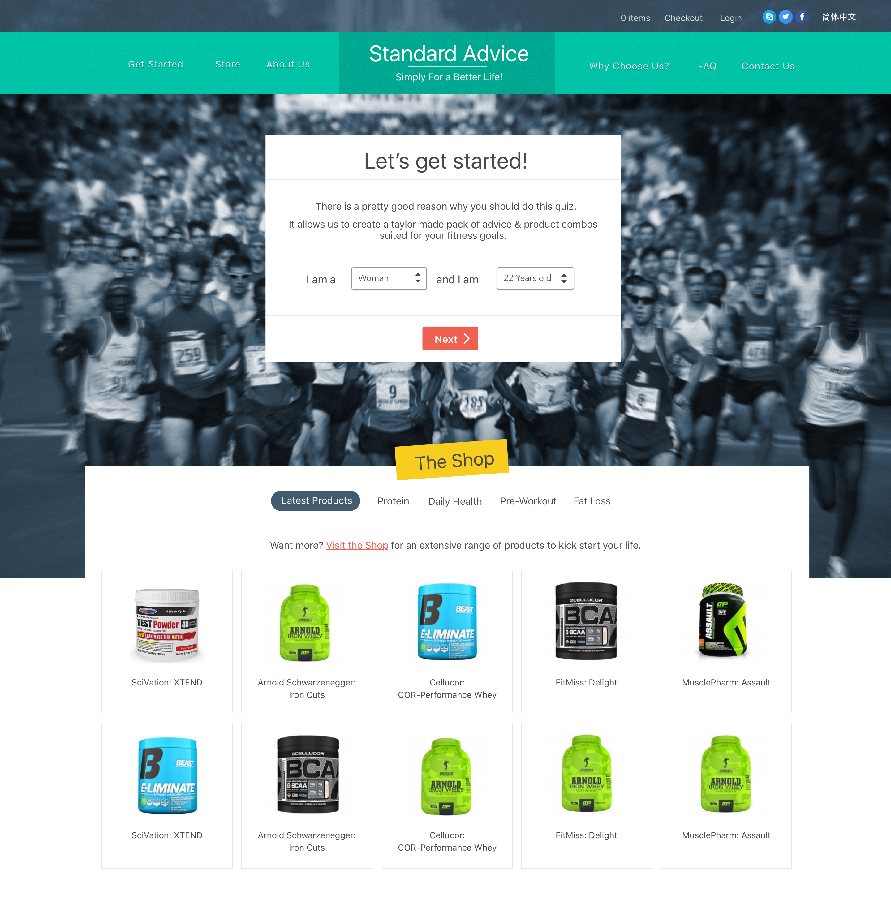 The custom quiz module was a way for a customer to choose some goals (such as weight loss) and then the products would be matched to them.